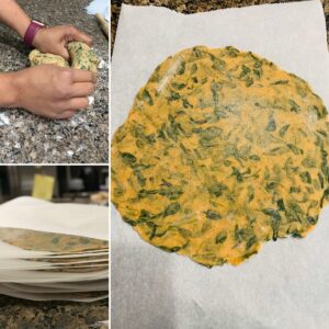 - Then Mix the blanched leaves, Whole wheat flour, almond flour, flax meal and the rest of the spices. Add water if necessary and make a dough.