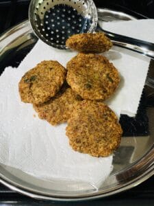 - Spray with Avocado oil spray again and “fry” at 400F for 15-18 minutes. Flip the vadas once half way through.